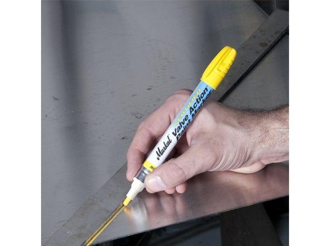 Valve Action маркер с жидкой краской предназначен для нержавеющей стали и сплавов, где сопротивление коррозии является обязательным условием. Сертифицирован на низкое содержание хлоридов, галогенов, легкоплавких металлов и серы. Каждая изготовленная партия проходит индивидуальный контроль и сертификацию на соответствие требованиям в военной и ядерно-энергетической сфере, действующими в большинстве стран мира. Металлический корпус маркера и двухсторонний заменяемый войлочный наконечник позволяют использовать маркер в промышленных условиях длительное время.
