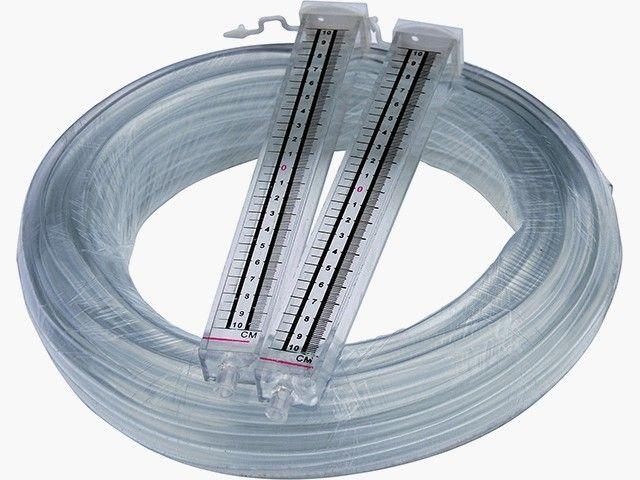 Гидроуровень работает по принципу соединяющихся сосудов. Присутствуют две измерительные колбы, изготовленные из пластмассы с обозначенными шкалами. Применяется для того чтобы определять взаимное расположение поверхностей элементов строительных конструкций, находящихся в горизонтальной плоскости. Используется при производстве стяжки пола, установке фундаментальных блоков, кладке кирпича, установке строительных контсрукций.